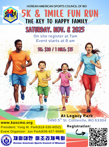 We will continue to support and engage with all Koreans so they may pursue health and happiness through everyday physical activities. Our goal is to develop the Korean American Sports Council of Missouri into an organization that grows with the active involvement and interest of the Korean community.